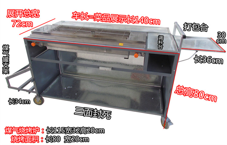 Gas barbecue grill thickened mobile smoke-free environmental protection barbecue car Outdoor cart Commercial stall Gas barbecue grill