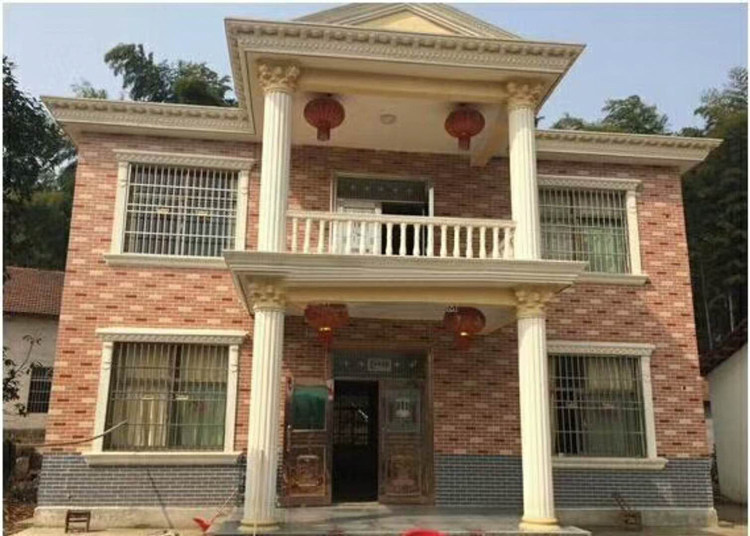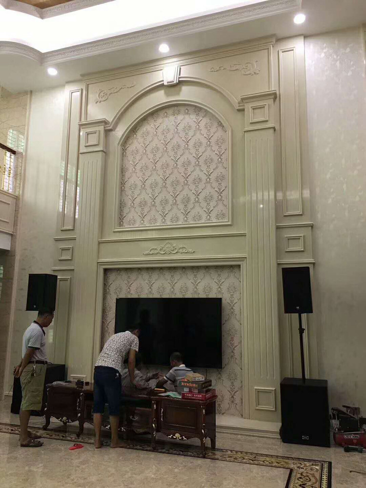 Custom European-style TV background wall Living room Tongbody stone marble artificial stone villa duplex Roman column