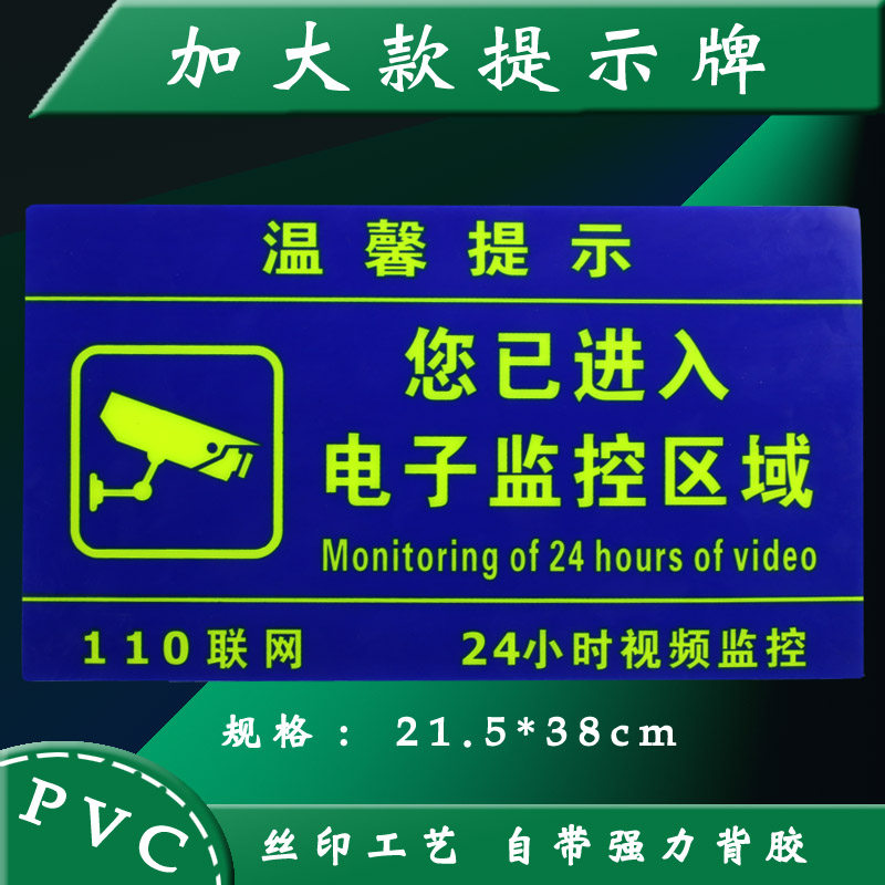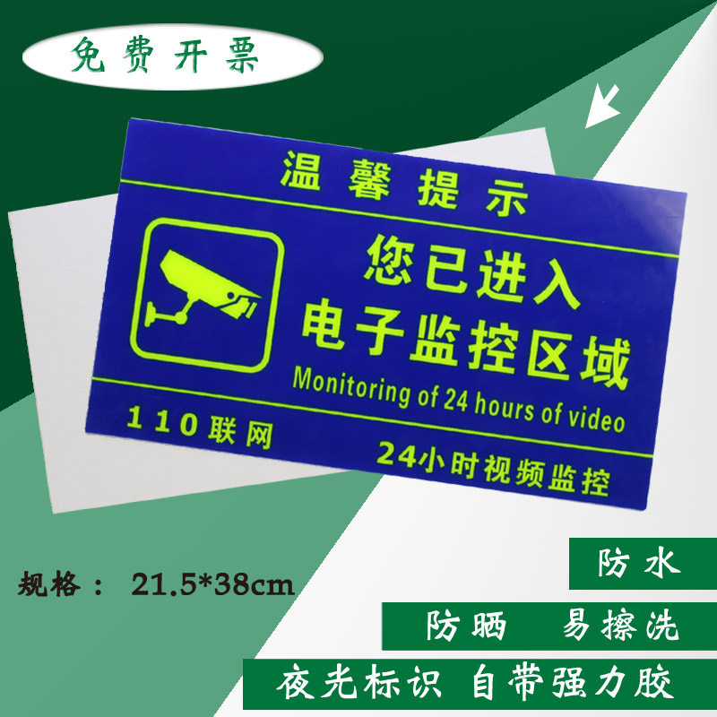 You have entered the electronic monitoring area identification card 24-hour video monitoring area warning card Luminous sign Large luminous electronic monitoring prompt card comes with superglue self-luminous card
