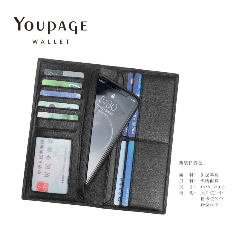 Goat Leather Long Wallet Man Genuine Leather Ultrathin Soft Long Money Clip Youth Tide Suit Wallet Business Soft Leather Wallet-Taobao