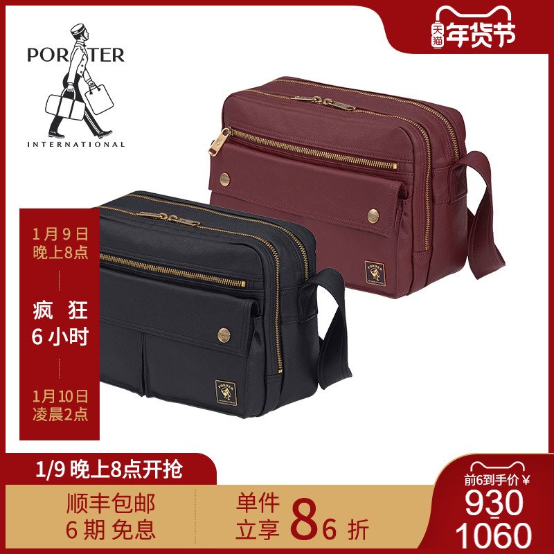 PORTER flagship store soft skin anti-splashing water large capacity double main bag multi-mezzanine shoulder bag for men and women shoulder bag chest bag