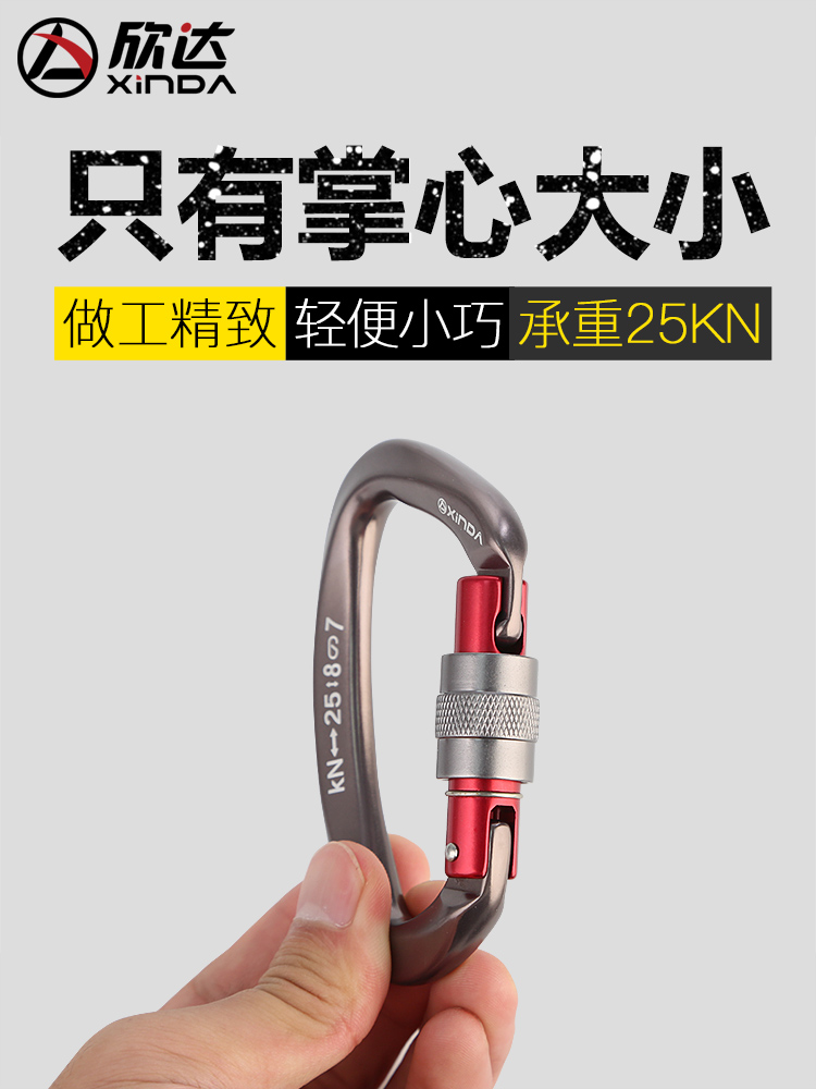 Xinda outdoor professional rock climbing main lock mountaineering buckle small D Type main lock outdoor quick buckle safety buckle rock climbing equipment