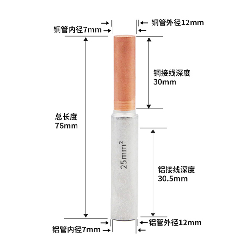 GTL-25 square copper-aluminum connection tube copper-aluminum wire butt transition copper-aluminum wiring tube copper-aluminum conversion joint
