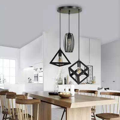 Nordic retro wrought iron industrial style dining room chandelier Three-headed creative personality art single-headed small chandelier Dining room lampshade