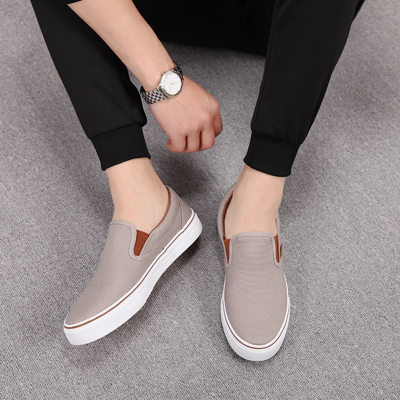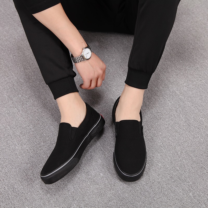Men's canvas shoes men's low-top cloth shoes a pedal casual Korean version of the shoes slip-on shoes men's shoes black cloth shoes