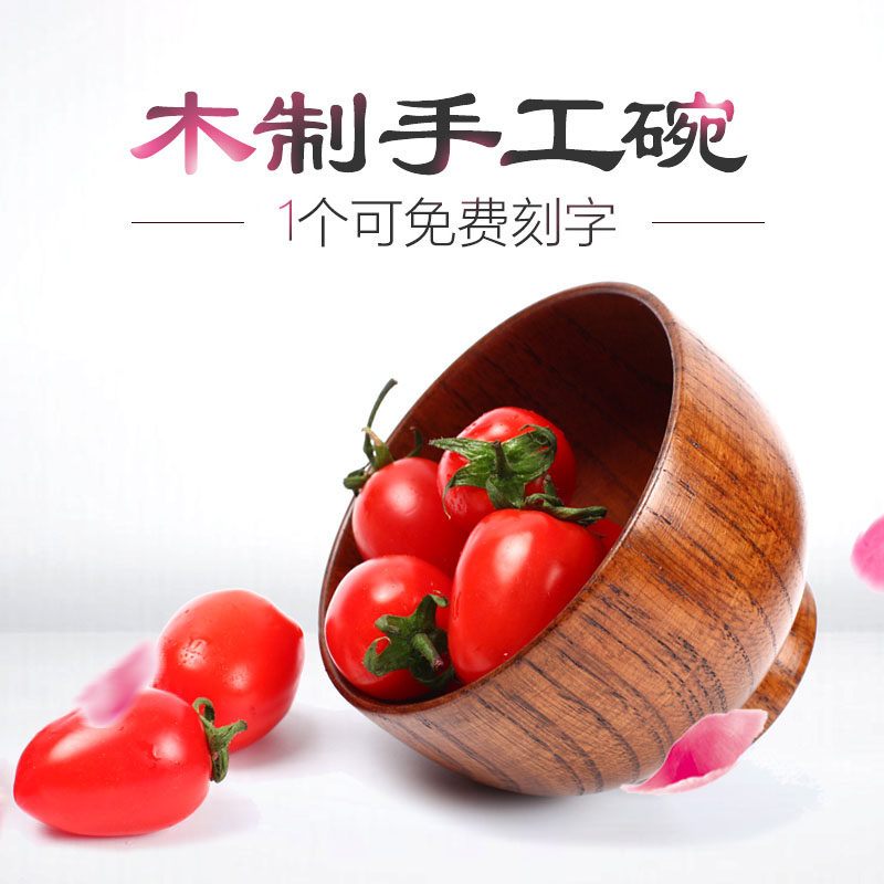 Jujube wood Japanese style small baby wooden bowl Creative baby natural adult retro household handmade solid wood bowl large size