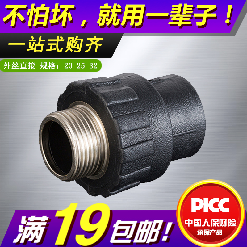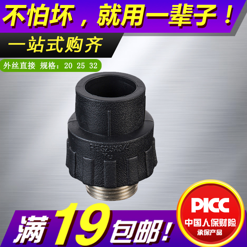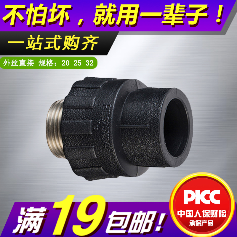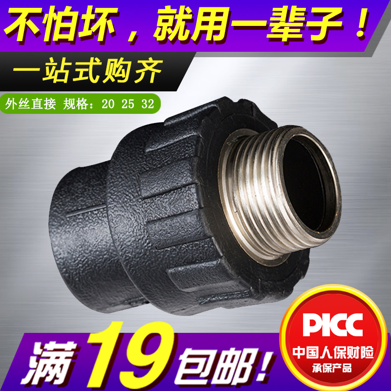 PE outer wire direct 2025324050 Black hot melt external teeth straight pipe joint accessories 4 points 1 inch 6 points
