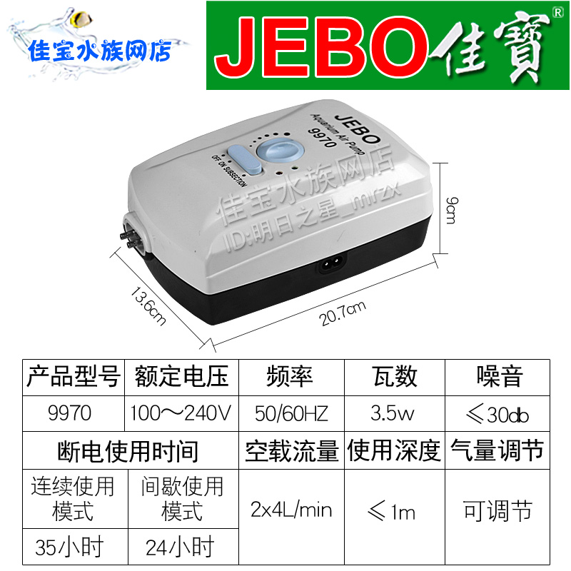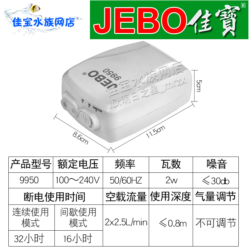 JEBO fish tank rechargeable oxygenation pump fish tank air pump fishing air pump Jiabao AC and DC oxygenation pump mute