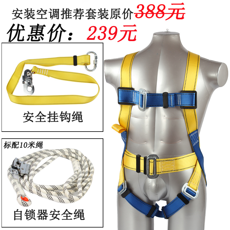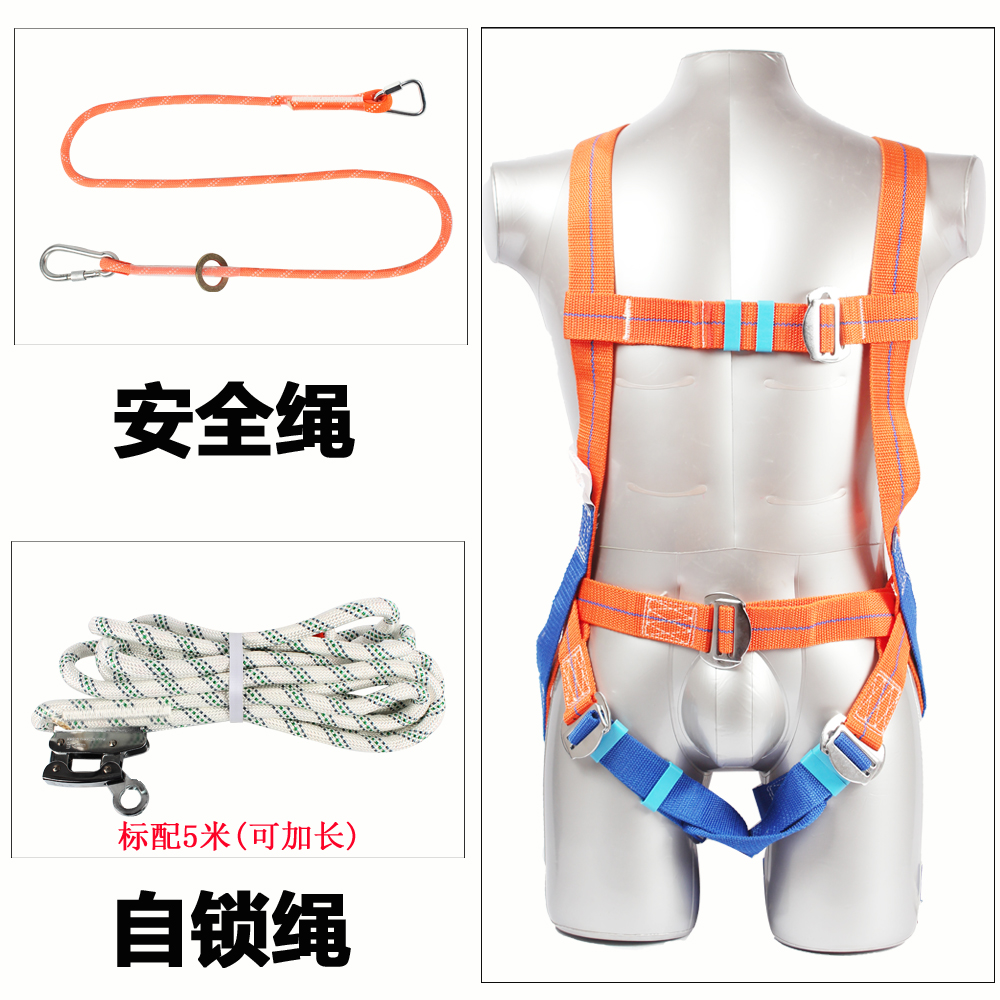Outdoor air conditioning installation seat belt aerial work suit safety rope construction whole body five-point wear-resistant safety rope