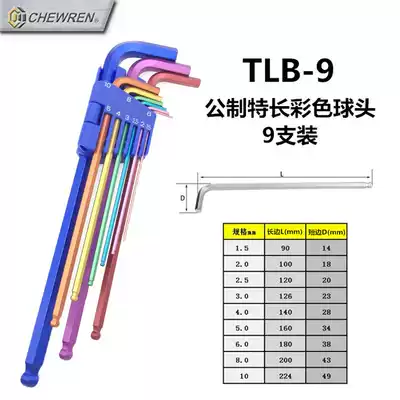 TAIWAN JIYUAN COLOR EXTENDED 9-PACK INNER HEX WRENCH 1 5~10MM WAVE HEAD HEXAGONAL KEY S2 BALL HEAD