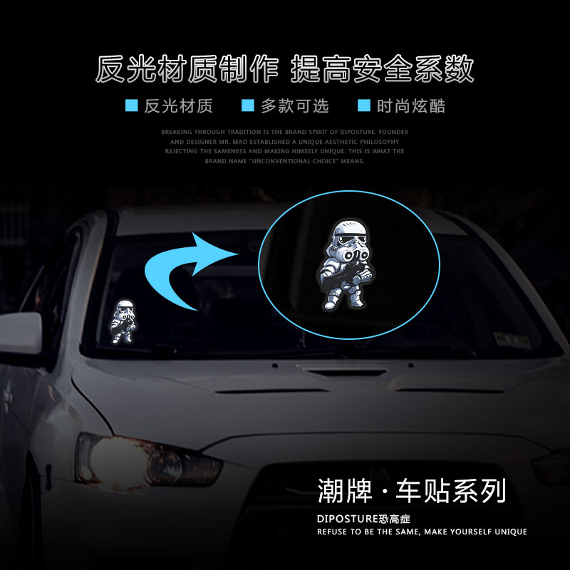 Funny Car Sticker Car Retrofit Night Light Reflective Interstellar War Cartoon Personality Creative Body Scratch-off Shelter Sticker