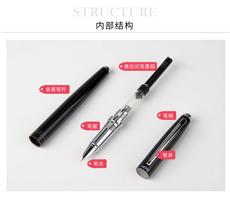 Hero Pen Elementary School Students Pen Students Practicing Pen Pen Adult Beginners Pen Writing Business Office Sign College Students Calligraphy Iridium Gold Pen Just Pen Race Ink Ink Sac Dual-use Pen