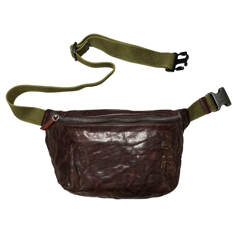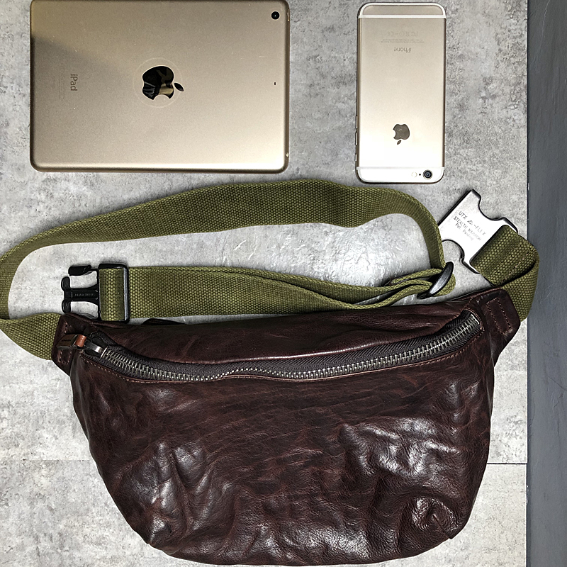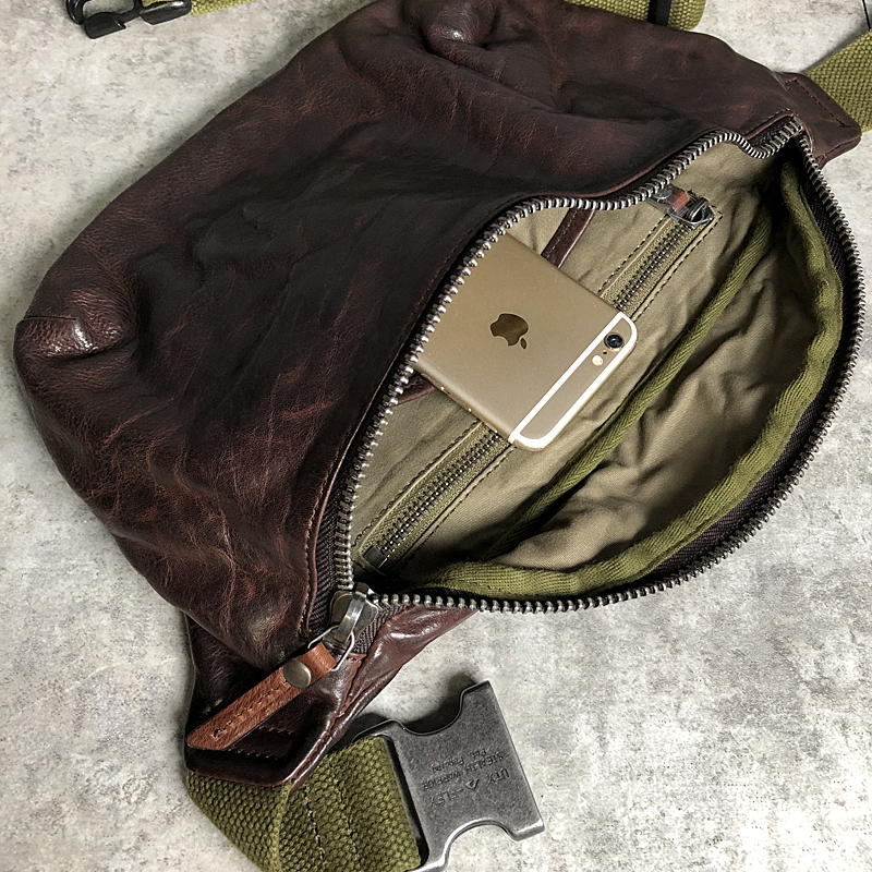 GURRS handmade vintage pleated top layer leather men's chest bag multifunctional leather waist bag mobile phone messenger bag tide bag
