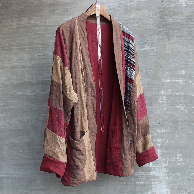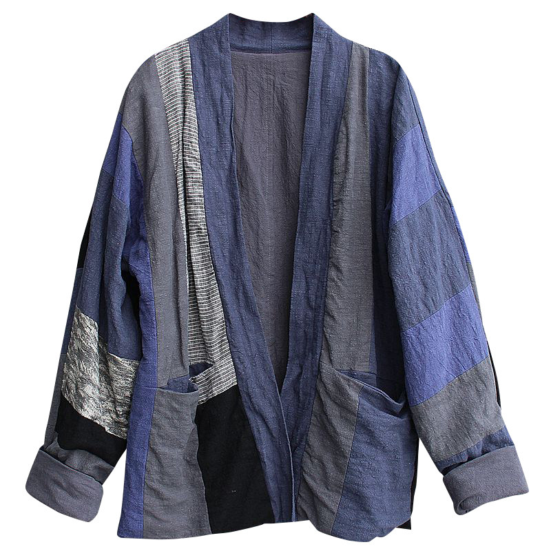 Unisex spring and autumn linen stitching small coat blouse Chinese style top Hanfu retro niche size