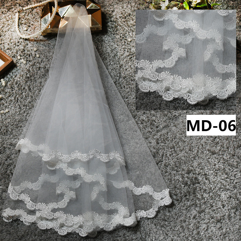 Bridal head yarn ultra-long new wedding wedding dress head yarn Long version Korean soft yarn lace lace soft yarn head yarn