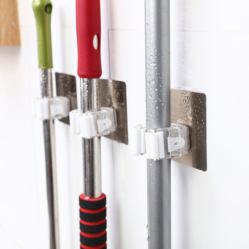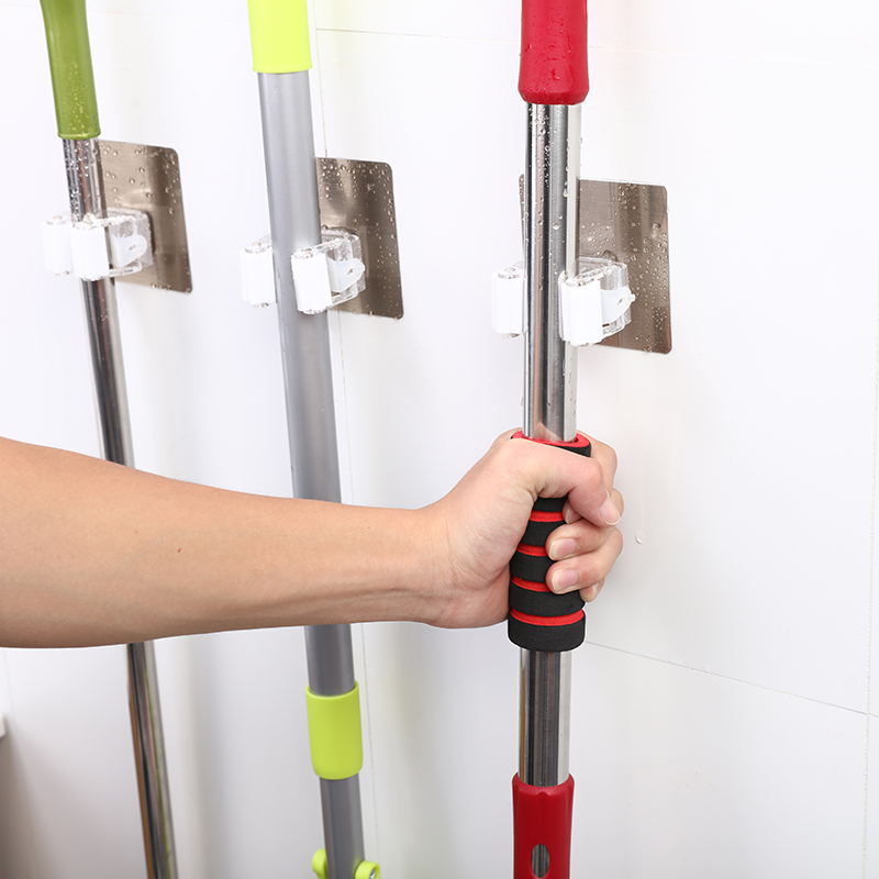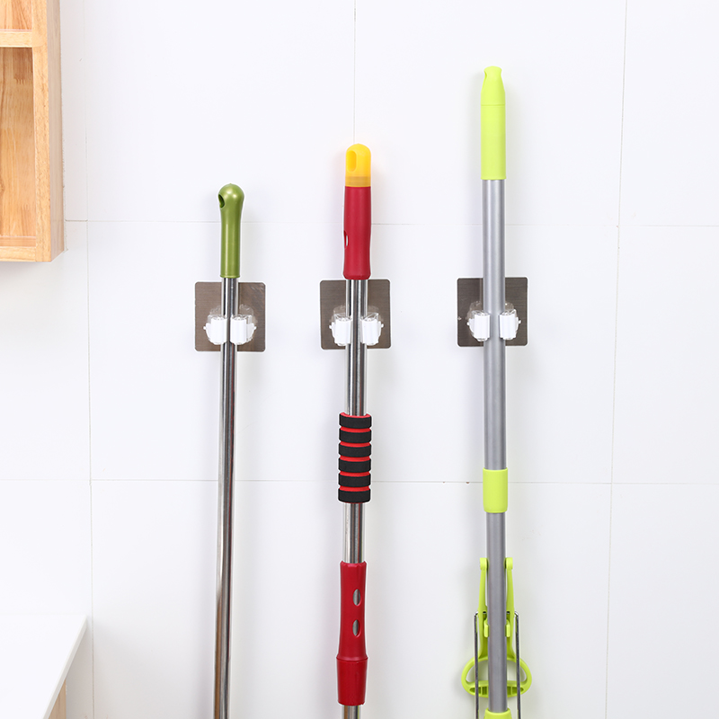 No trace sticky mop clip free punching door behind sticky hook hook powder room mop rack hanging broom shelf card holder