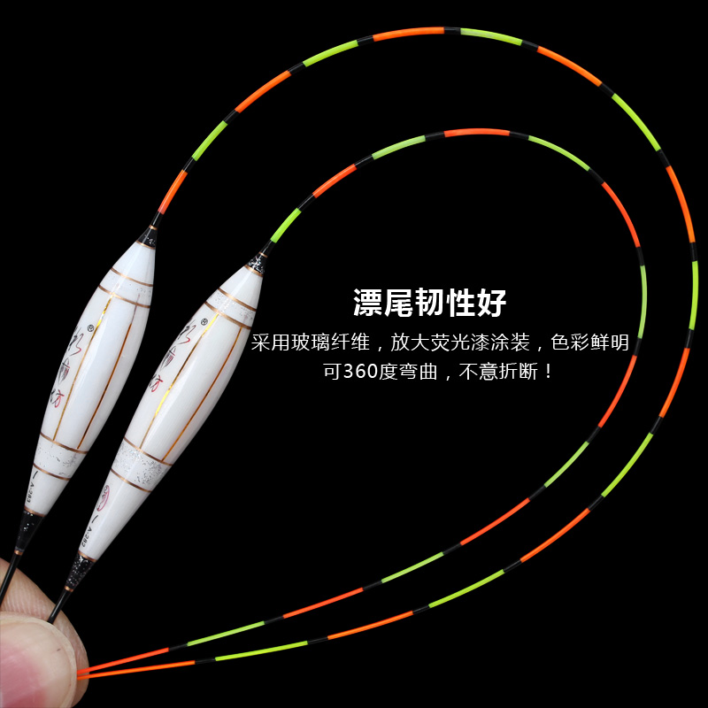 Peacock plume floating with light mouth and black pit eye-catching nearsighted carp buoy anti-flowing water and windsurf floating cover