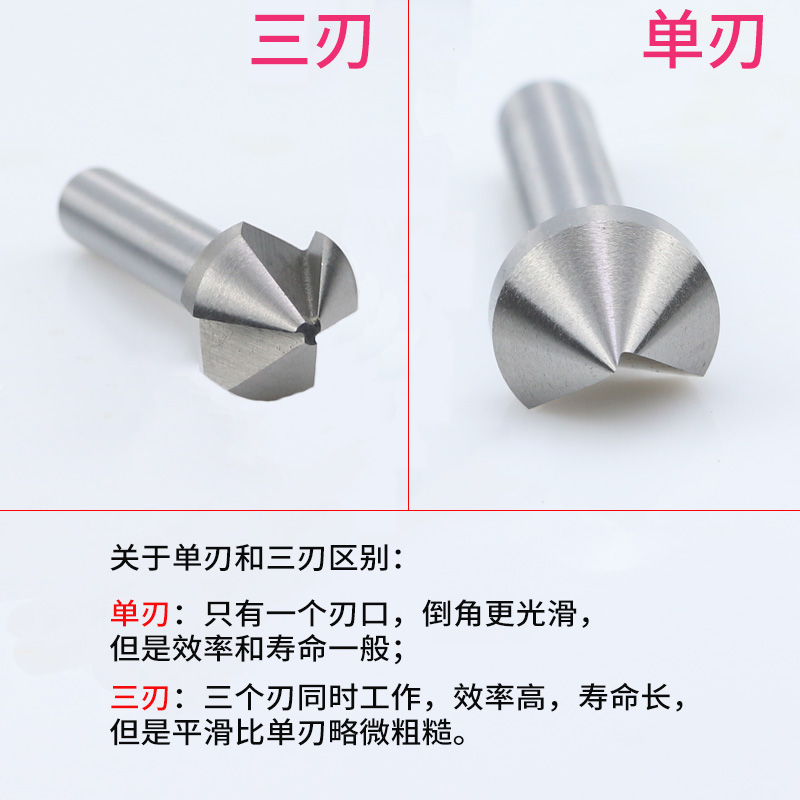 Boen metal chamfering tool 90 degrees three-edged chamfering drill straight handle countersink drill milling cutter