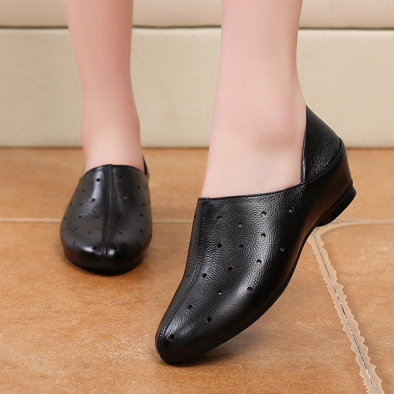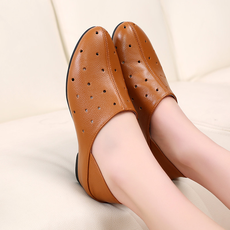Woman's shoes spring 2020 new Han plain soles slippers with leather hollow soft soles pregnant women leisure white shoes