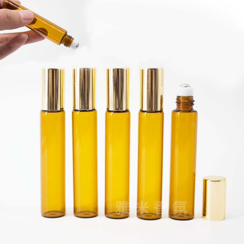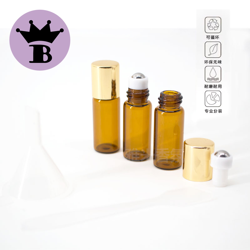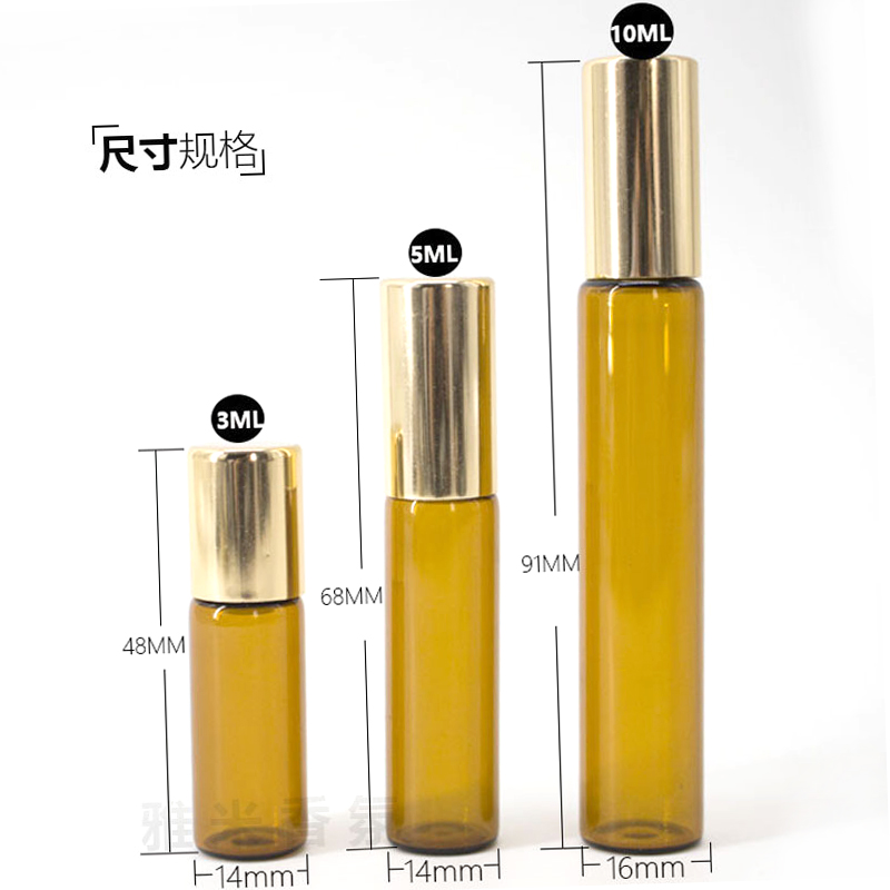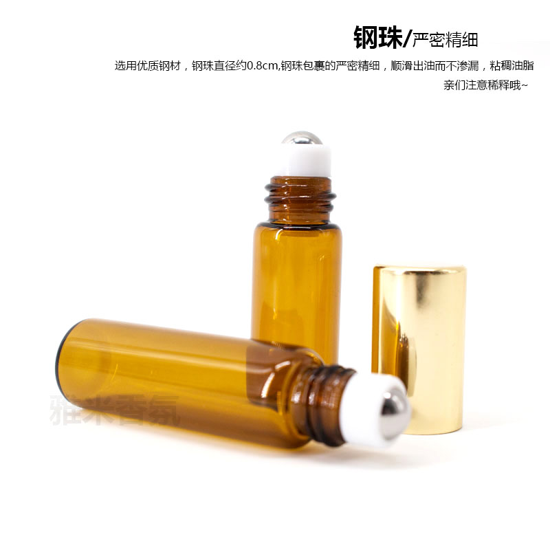 Export European glass bottle steel ball roller bottle 3ml5ml10ml brown light-proof rolling bead bottle essential oil bottle sub-bottling
