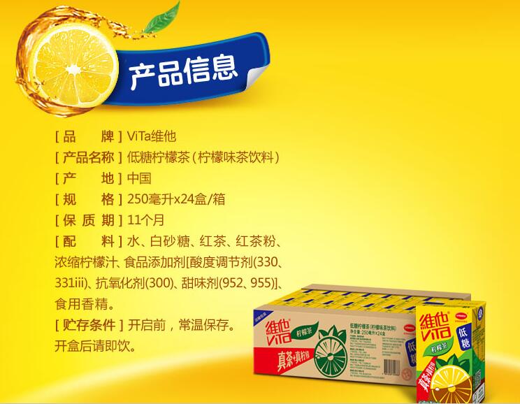 Regional Vita Low Sugar Lemon Tea 250ml*24 Box Fruity Drink Lemon Vitasoy
