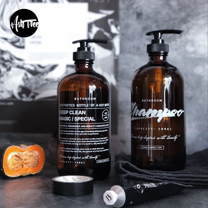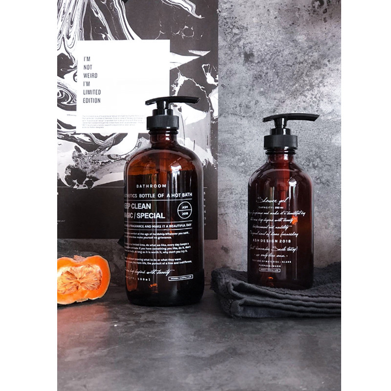 500ml full English glass bottle 500ml shampoo glass bottle 250ml shower gel glass bottle
