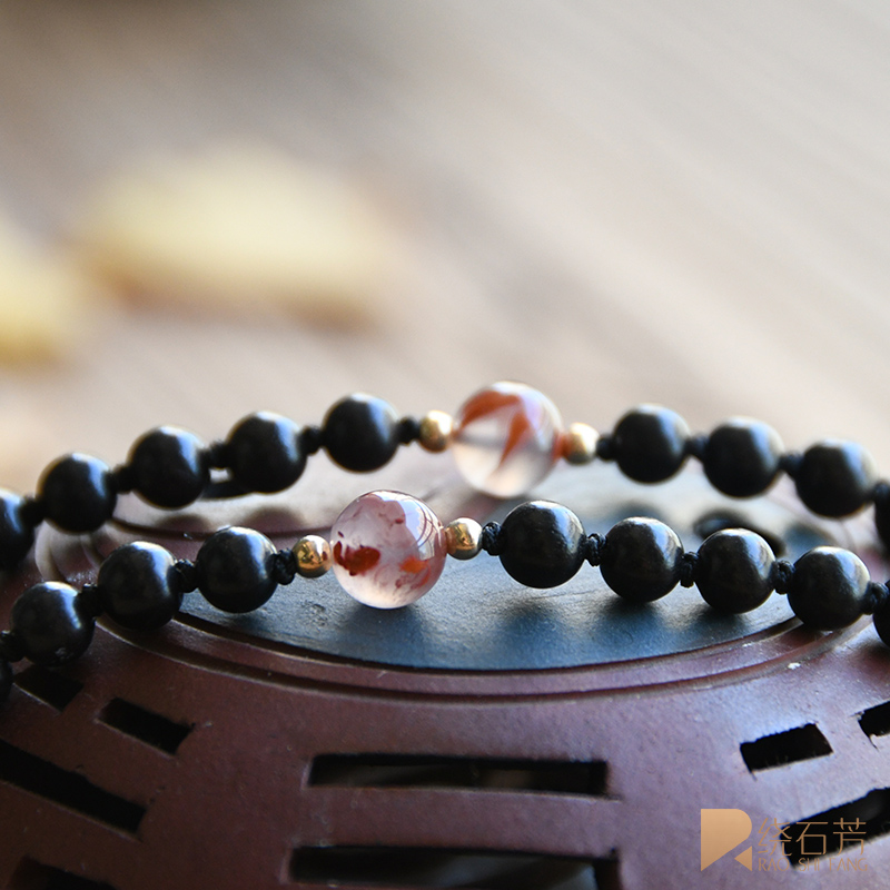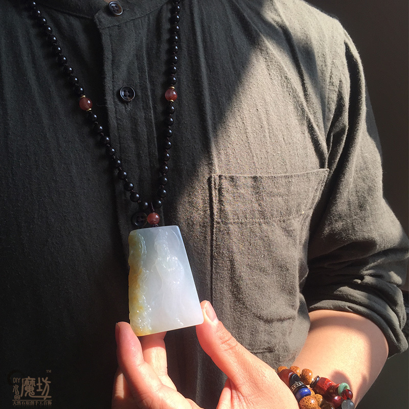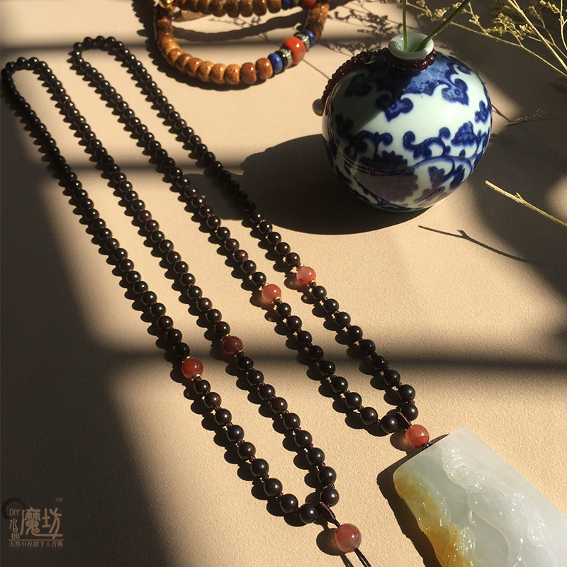 Full bead braided men's neck hanging rope ebony southern red agate hand-woven tag jade jewelry with rope