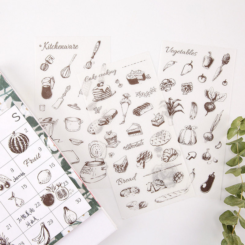 Creative flat sheets and paper stickers Happy Fruits Vegetables Food DIY Decorative Handbill Stickers 6 sheets