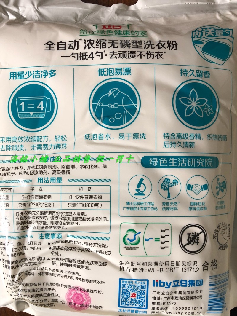 Liby automatic concentrated phosphorus-free washing powder 515g*4 bags 1 to 4 spoons Low bubble, easy to drift, water-saving