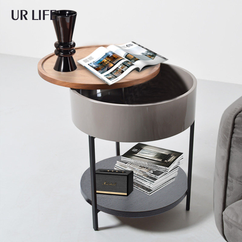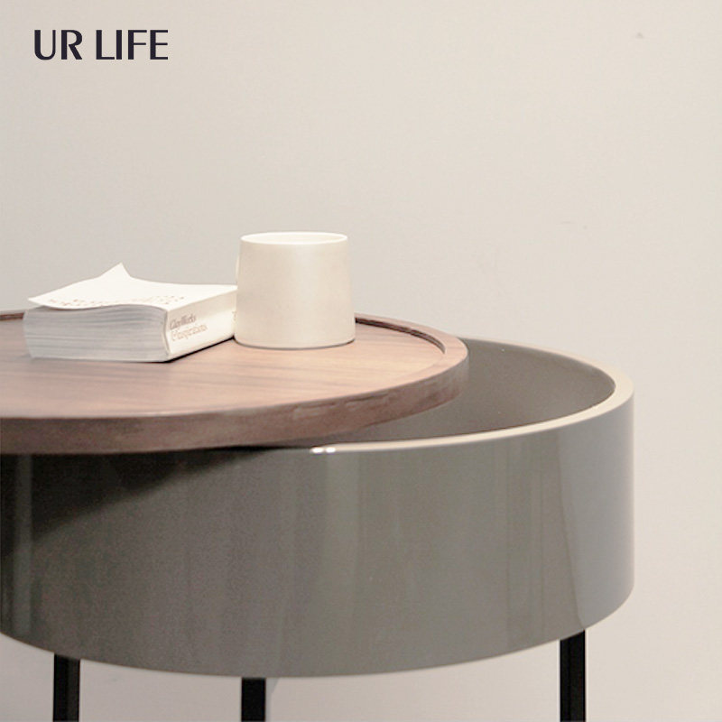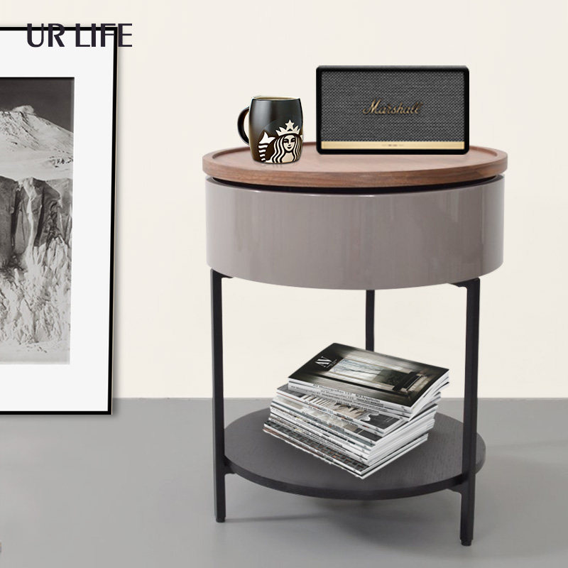 urlife Nordic minimalist round walnuts sofa edge Several side cabinet livingroom Sliding small round table Idea bed head cabinet