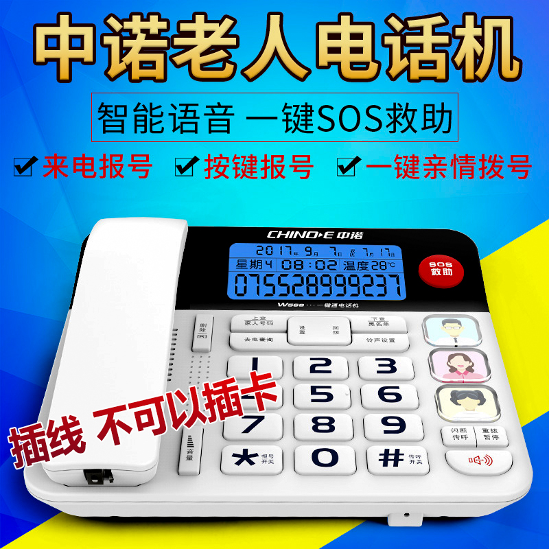 Zhongnuo W568 telephone for the elderly with one button through landline handset, big volume, big ring tone, call and key number
