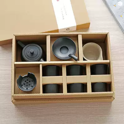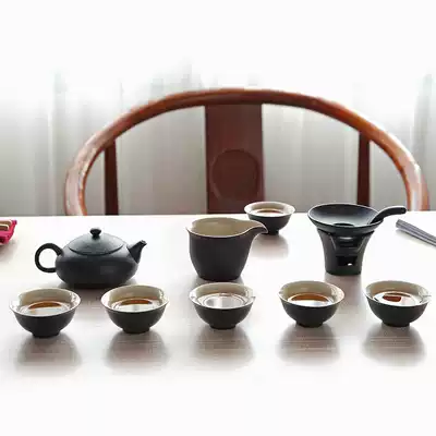 Complete set of home Japanese tea set teapot tea cup rough pottery black pottery kung fu tea set set retro tea bowl tea set Tea Sea