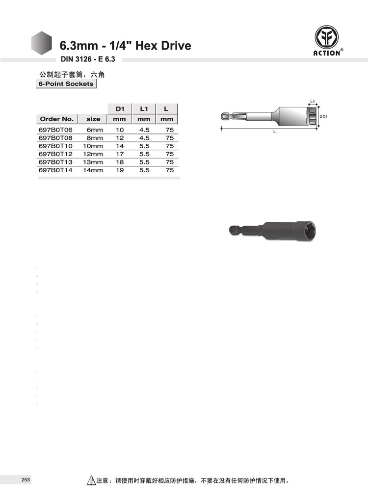 697B0T06 (6mm) 697B0T08 (8mm) 697B0T10 (10mm) 697B0T12 (12mm) 697B0T