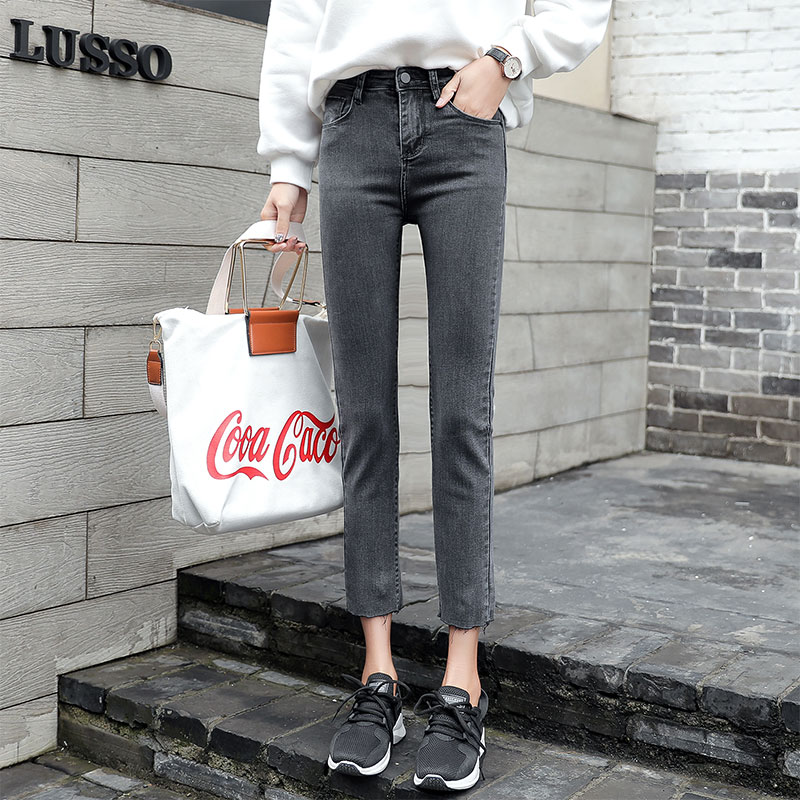 High waist chic Korean soft girl straight jeans eight points 2021 spring and summer new thin super fire nine points pants thin women