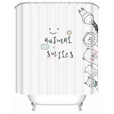 Nordic Polyester fiber shower curtain set waterproof and mildew-proof thickening free perforation can be customized door curtain powder room curtain partition window