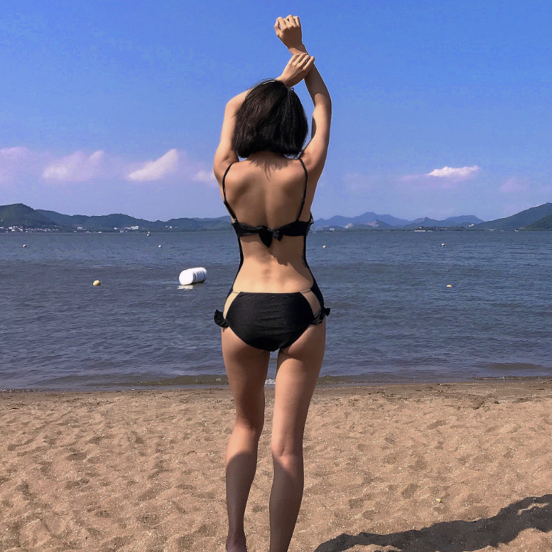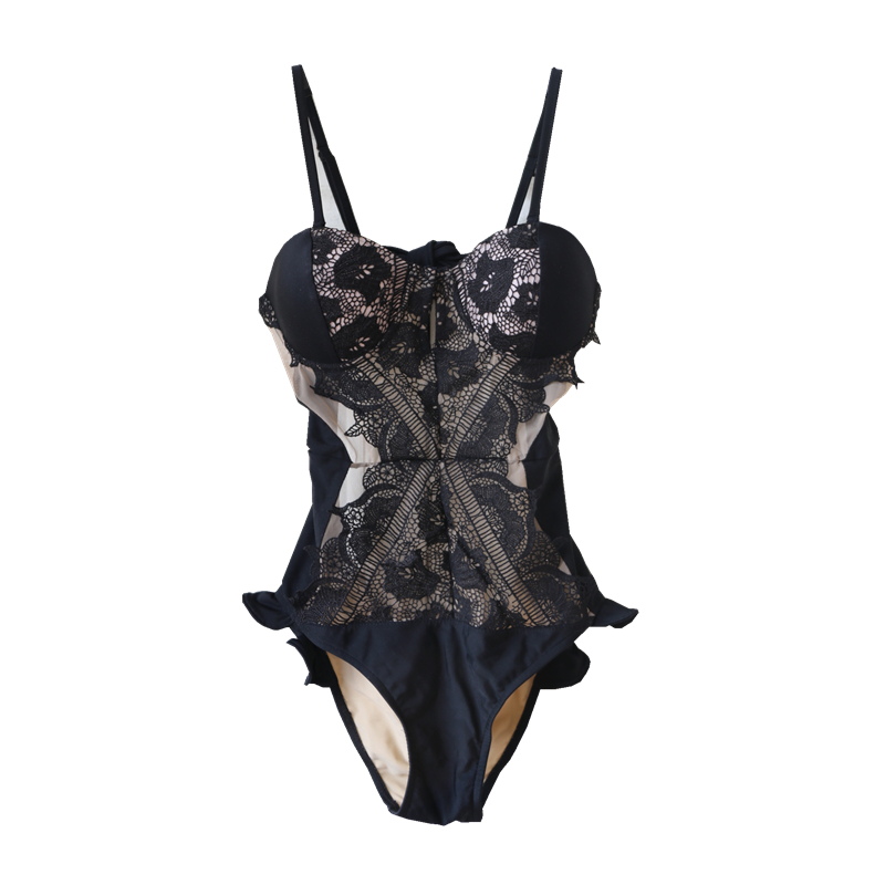 Swimsuit women 2021 hot spring large size black belly thin ins wind one-piece sexy fairy fan lace swimsuit women