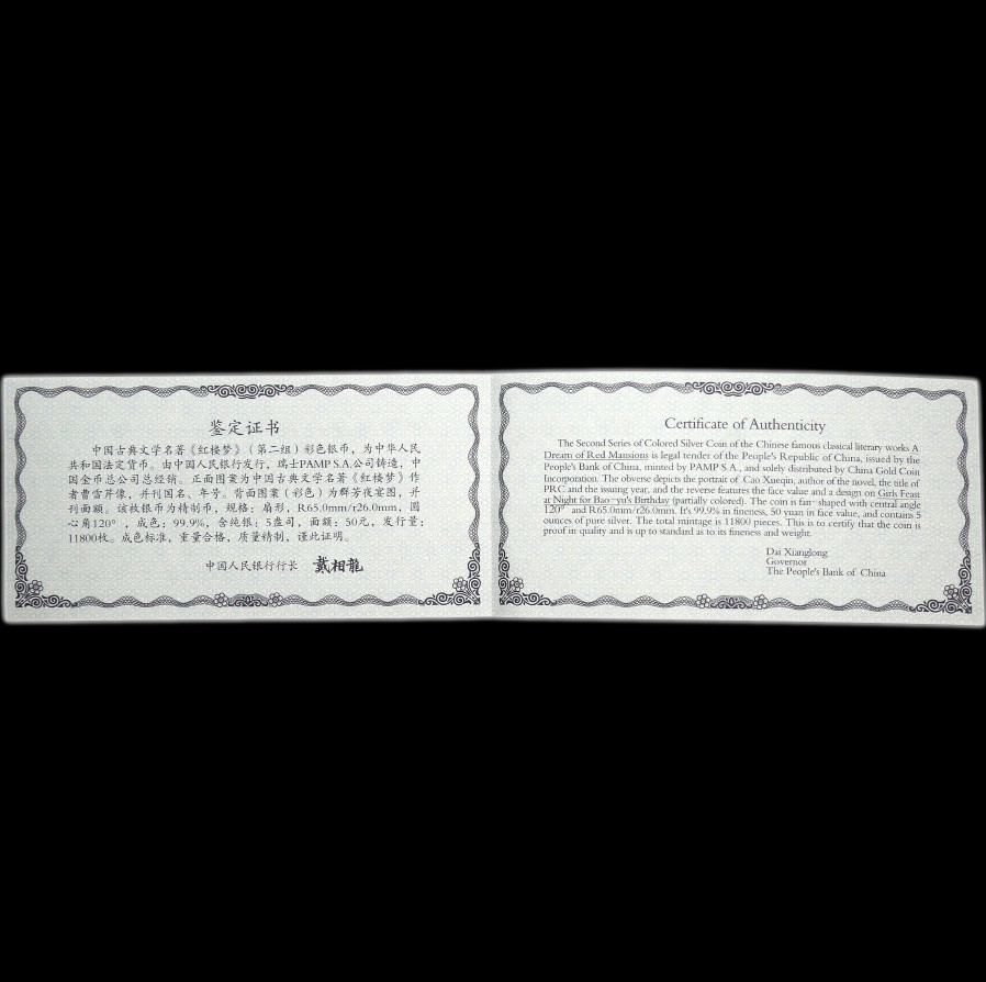 2002 Red Chamber Dream Color Memorial Silver coin 2 sets with certificate box 5 oz group Fang Night Feast Silver coin