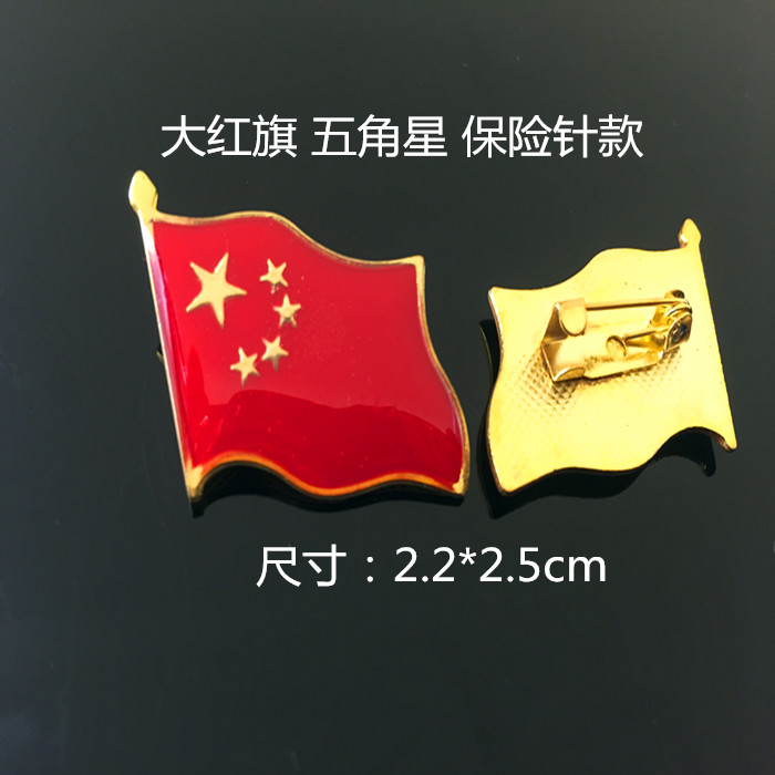 National flag badge Five-pointed star badge Red flag-shaped iron gold-plated butterfly buckle National Flag Party emblem Badge pin National Emblem