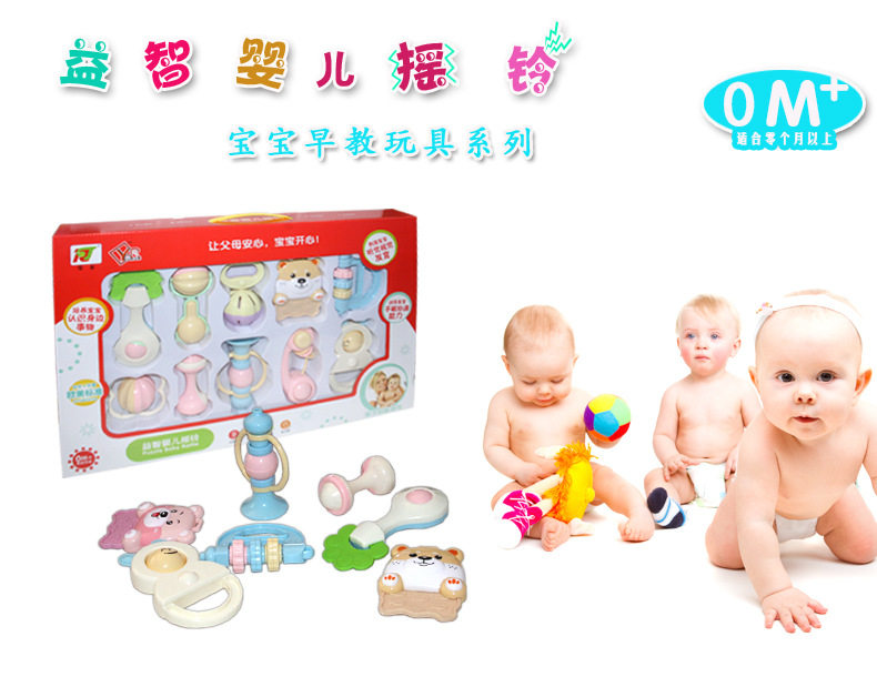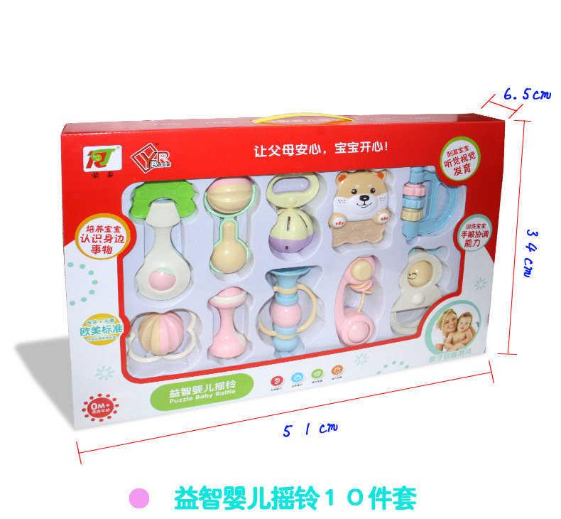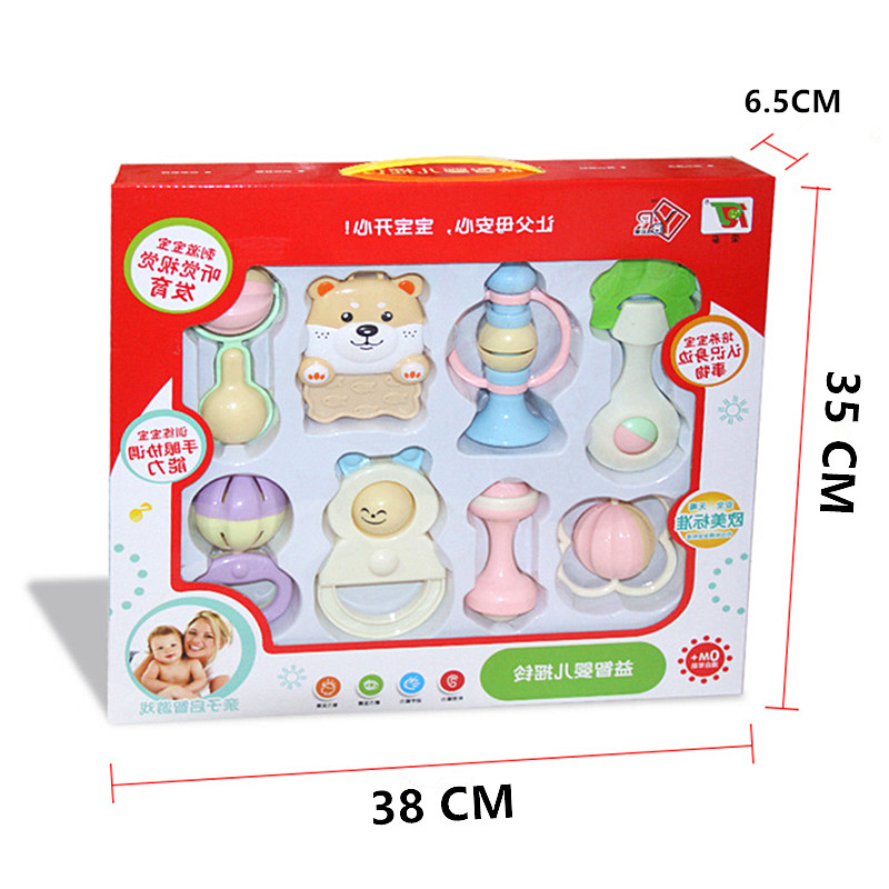 Rattle baby 8 pieces of hand-grabbing gift box newborn baby puzzle early education sand hammer 0 hand rattle
