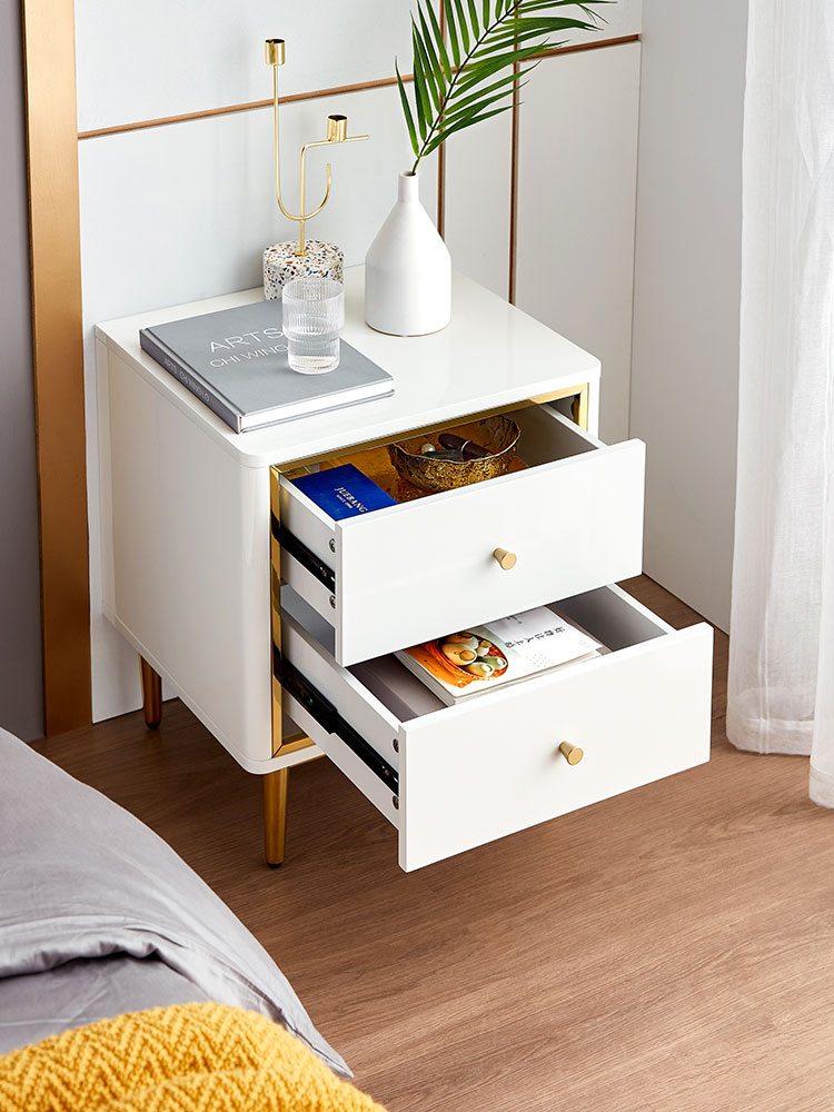 Light luxury modern ins small bedside cabinet simple wrought iron white mini narrow cabinet storage bedside drawer DZ1B