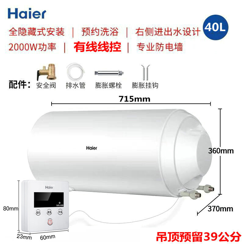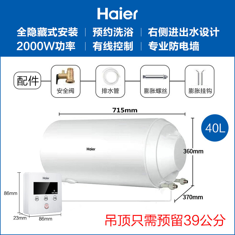 Haier ES40H-L5(ET) household 40-liter electric water heater full hidden concealed water storage side outlet line control