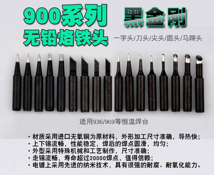 900 soldering iron head Black diamond soldering iron head Lead-free welding nozzle tip tip horseshoe 900M-T-K black knife type