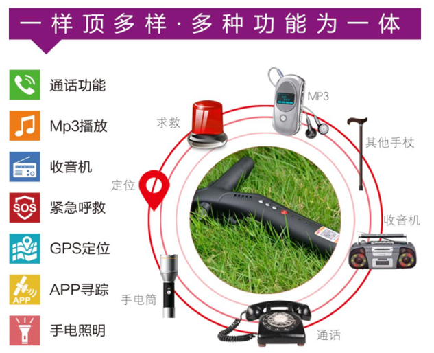 Smart cane climbing stick old man cane GPS positioning with lamp radio anti-slip scaling multi-function cane