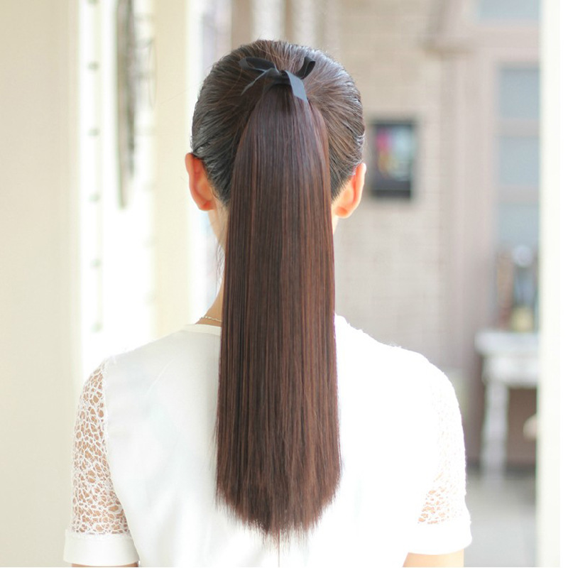 Lace-up wig ponytail female long straight hair piece golden flaxen cold brown beige light yellow stuffy cyan
