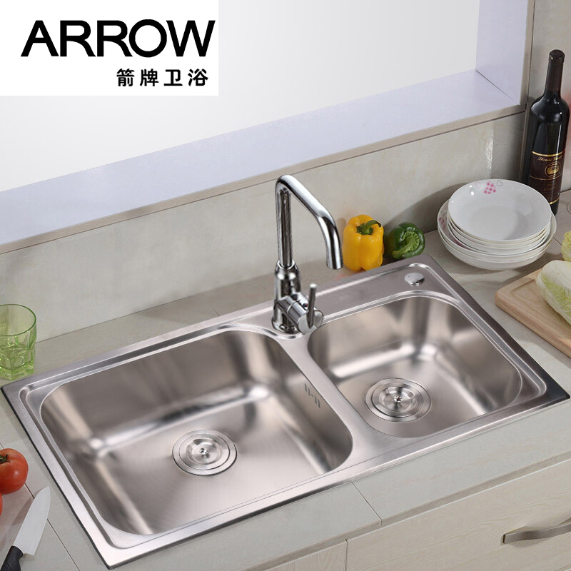 ARROW Arrows SINK SINK WASH BASIN DOUBLE SINK PACKAGE WITH DRAIN WATER BASKET TAP STAINLESS STEEL KITCHEN SET AE2401