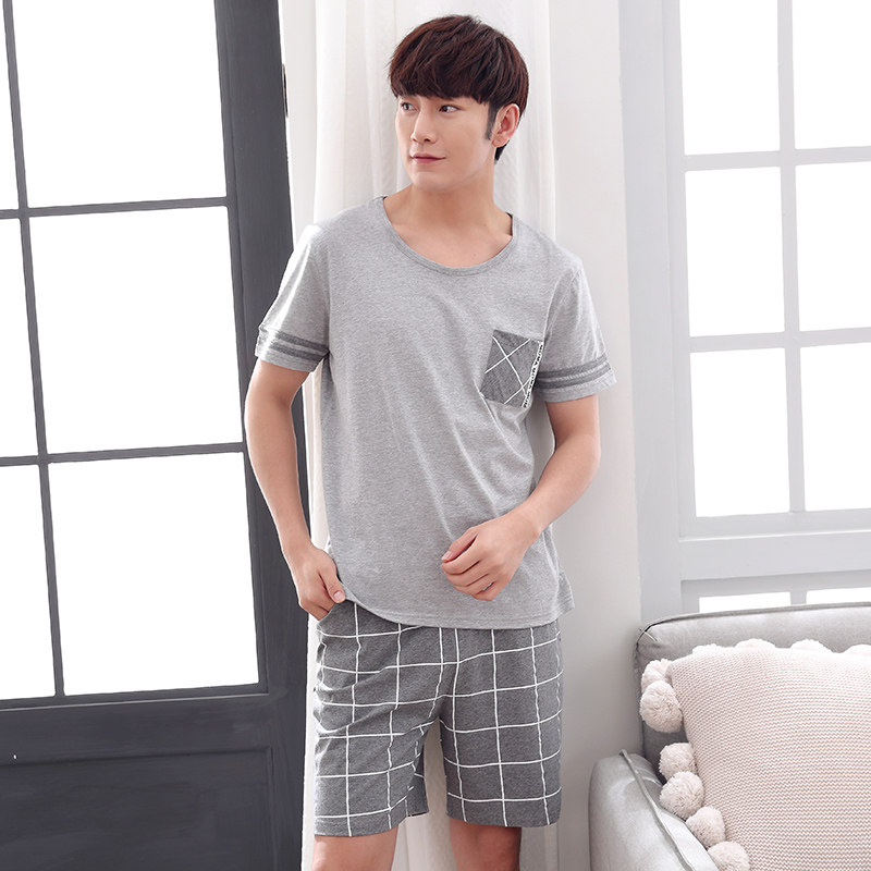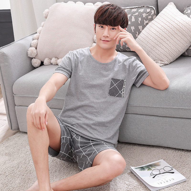 Men's Sleepwear Family Residence Summer Short Sleeves Pure Cotton Thin Section Youth Shorts Summertime Men's Casual Home Wear 2 pieces