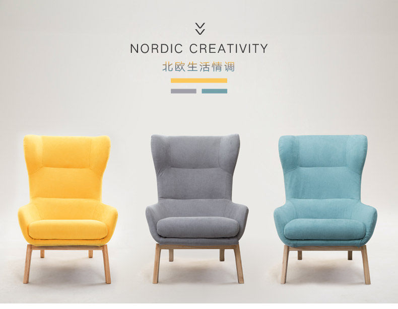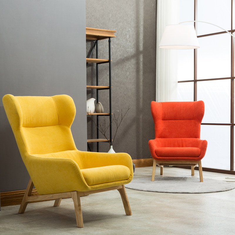 Modern simple Nordic household single-person sofa chair living room Solid wood furniture lunch lazy cloth American tiger chair