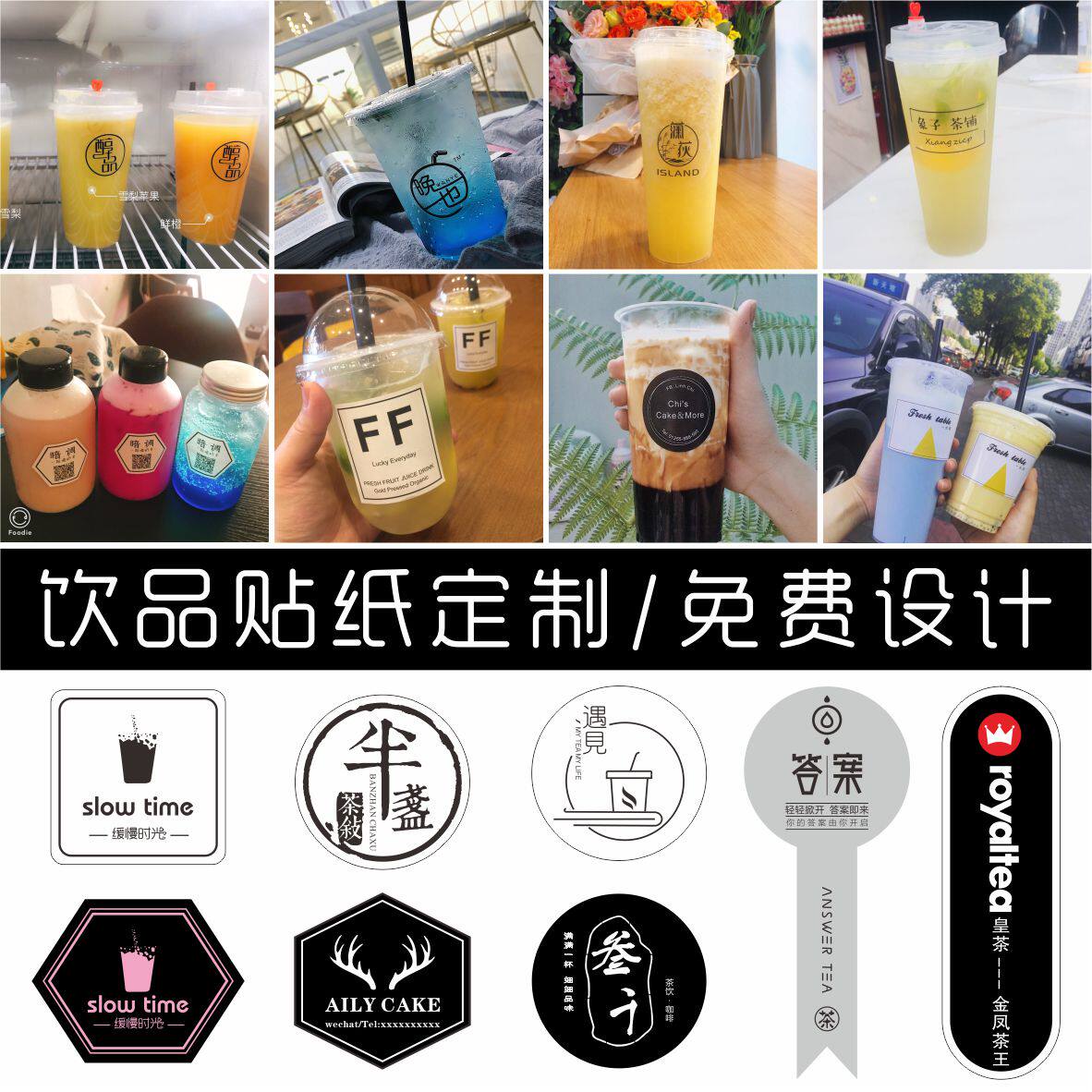 Fruit adhesive sticker set to make custom baking long label Flower Shop Logo Meal Kit Takeaway Seal of Milk Tea Cup