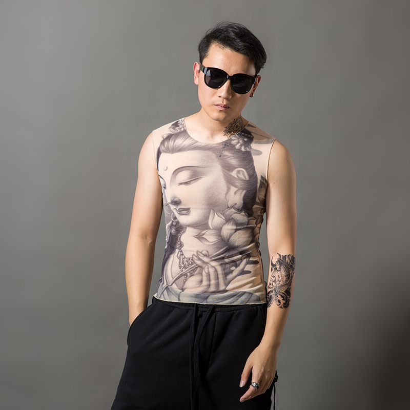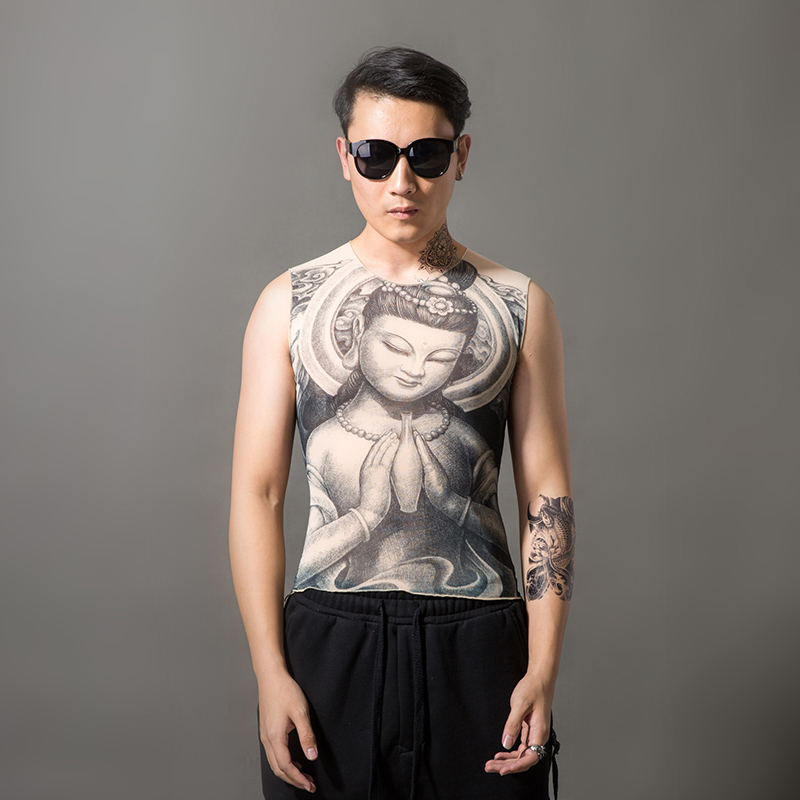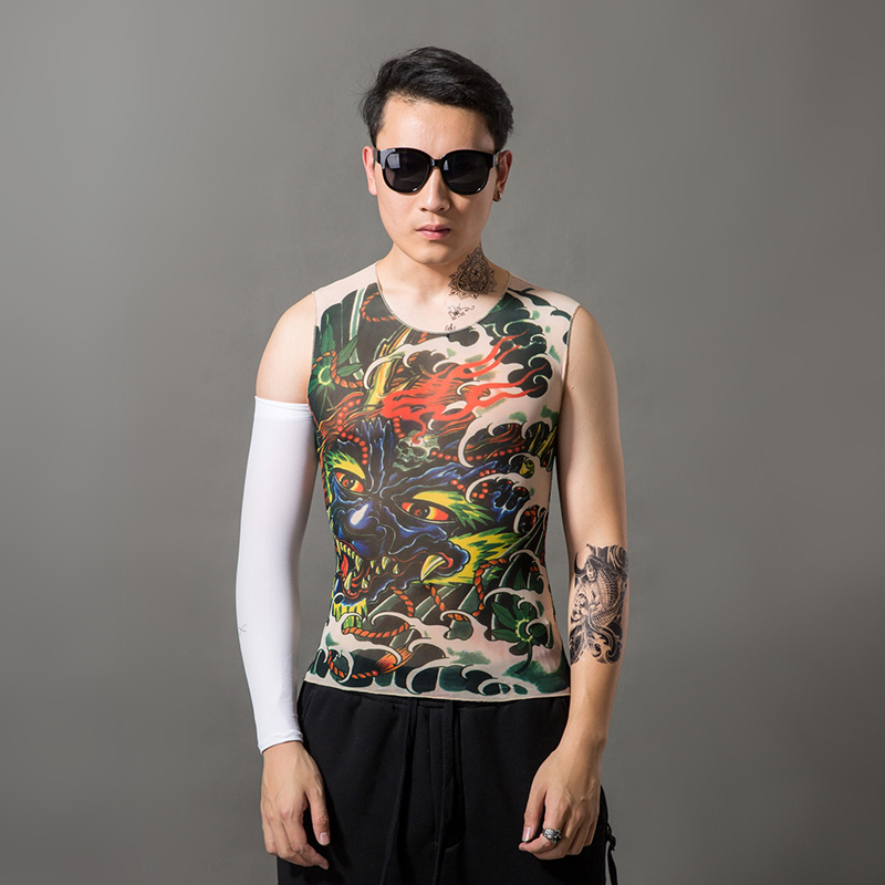 Tattoo clothes tight-fitting quick-drying summer printing punk elastic personality nightclub female tattoo vest T-shirt sleeveless