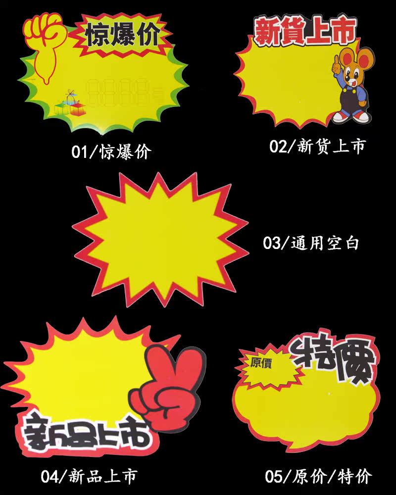 Price new label large POP advertising paper blank explosion sticker New Year's product price tag promotion card